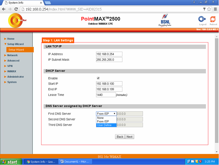 Go to a web browser and type 192.168.0.254 in the address bar and press enter and it will prompt a window as shown above.192.168.0.254 is the IP address of the Point Max 2500 WiMAX CPE.