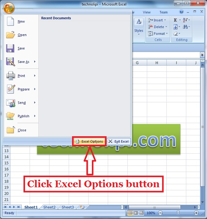 Now, as shown in the above image click Microsoft Office 2007 Logo  to view the menu under Office Button.
