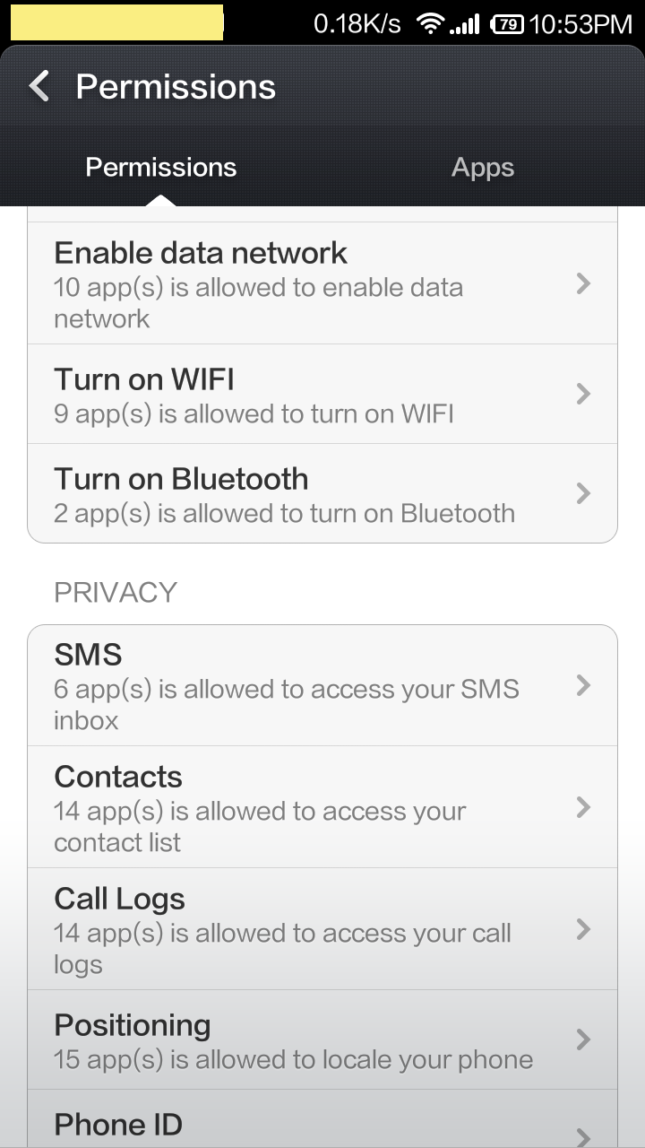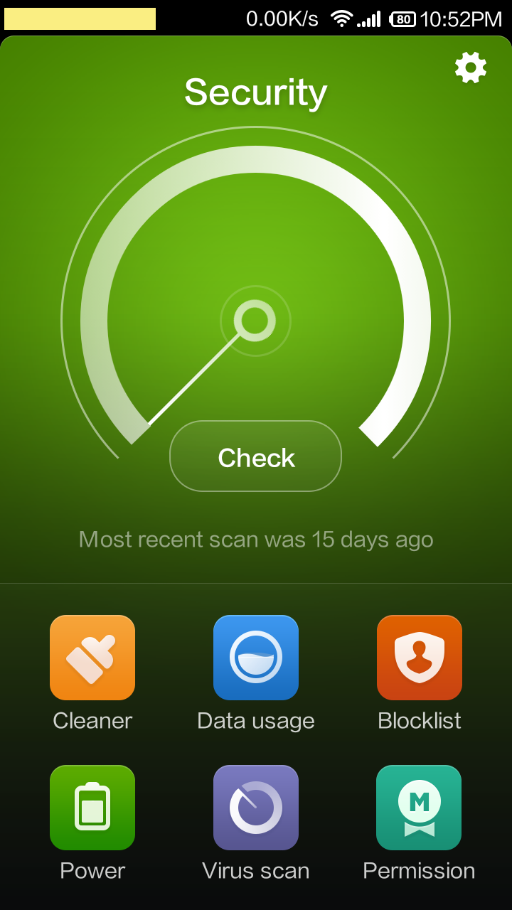 Go App screen and tap the Security app in your Redmi 1s phone.